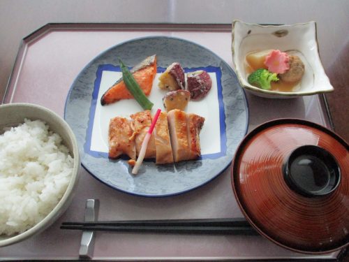2月17日のランチ 鮭の麴漬けと若鶏の西京焼き