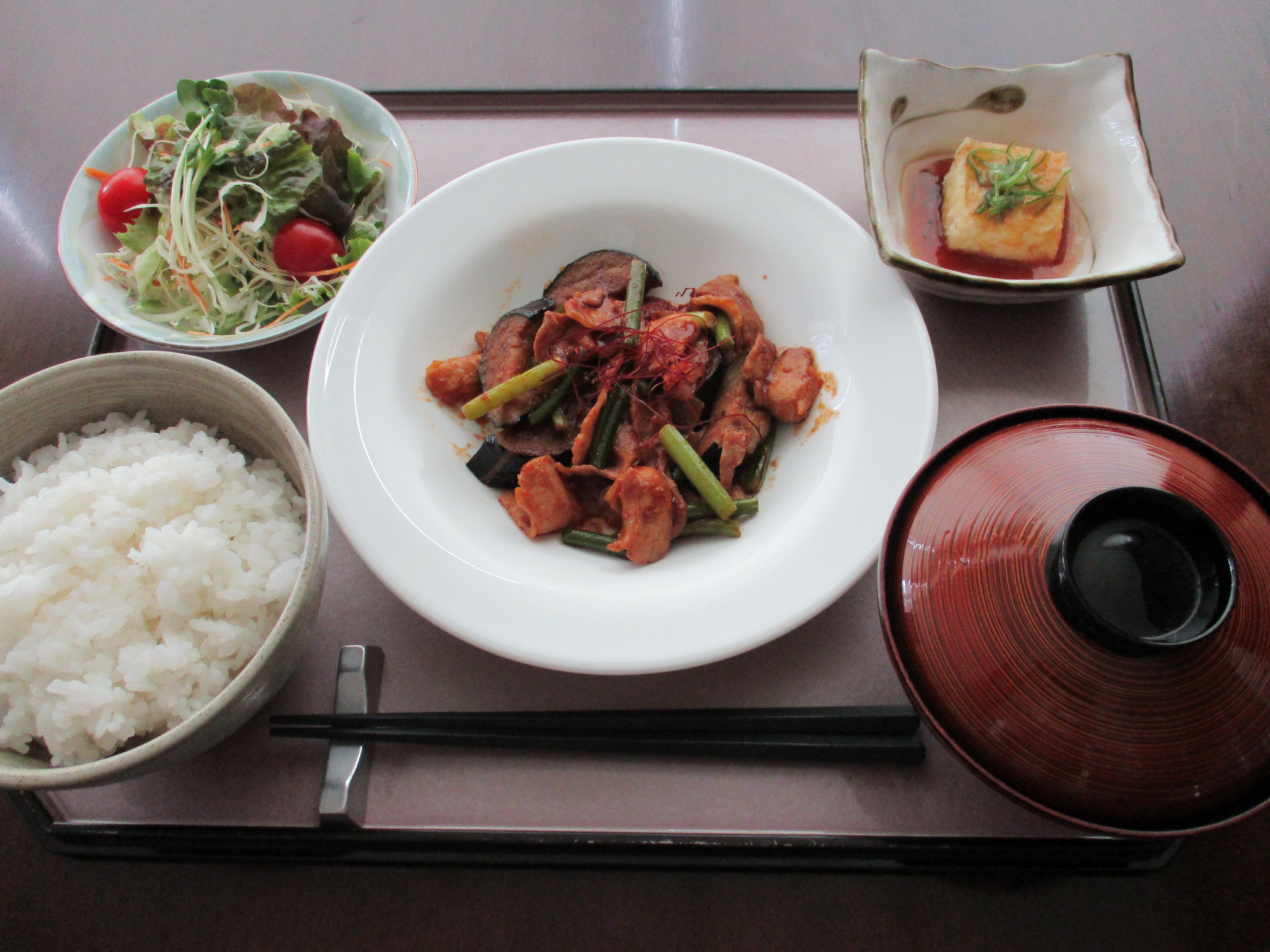 10月14日のランチ 豚バラと茄子のコチュジャン炒め