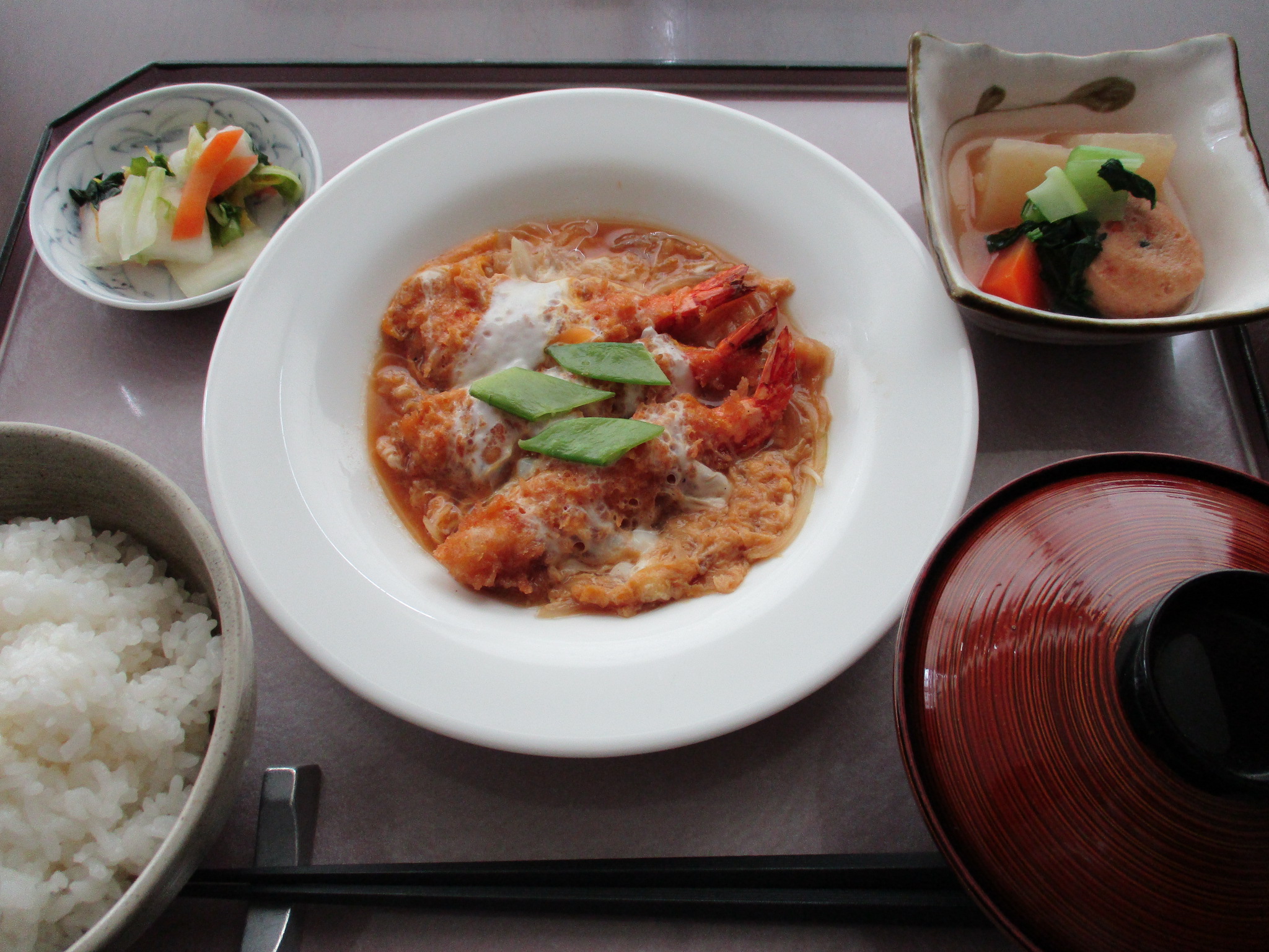12月22日のランチ 海老フライ卵とじ
