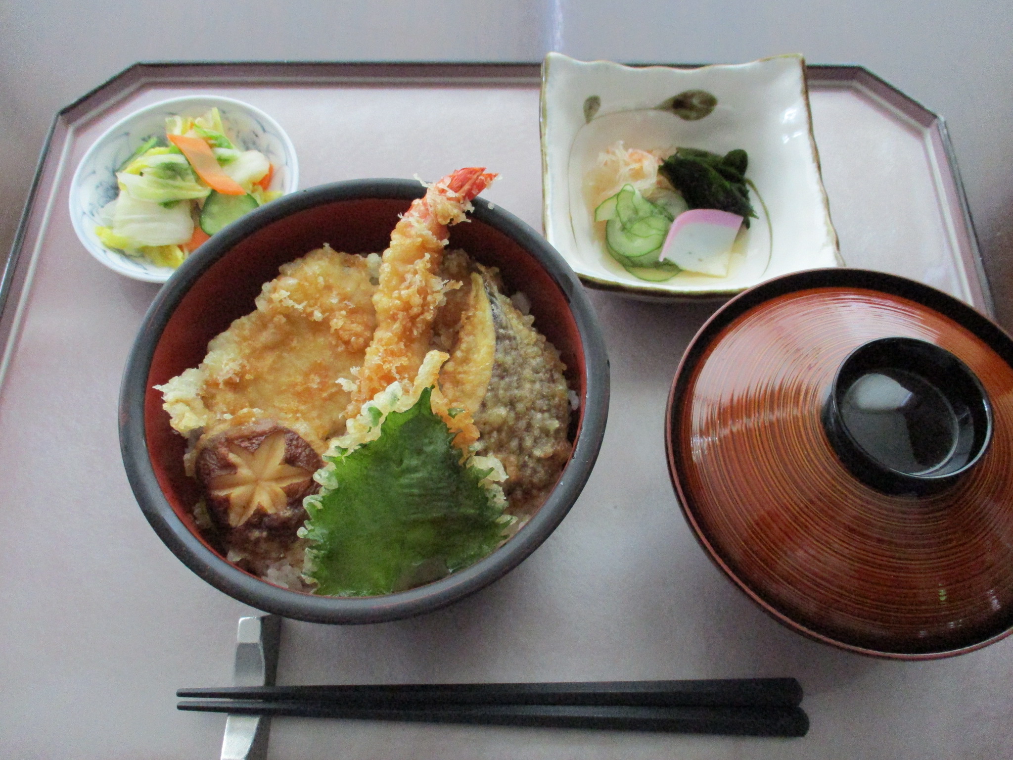 1月8日のランチ 天丼(海老・鶏・野菜)