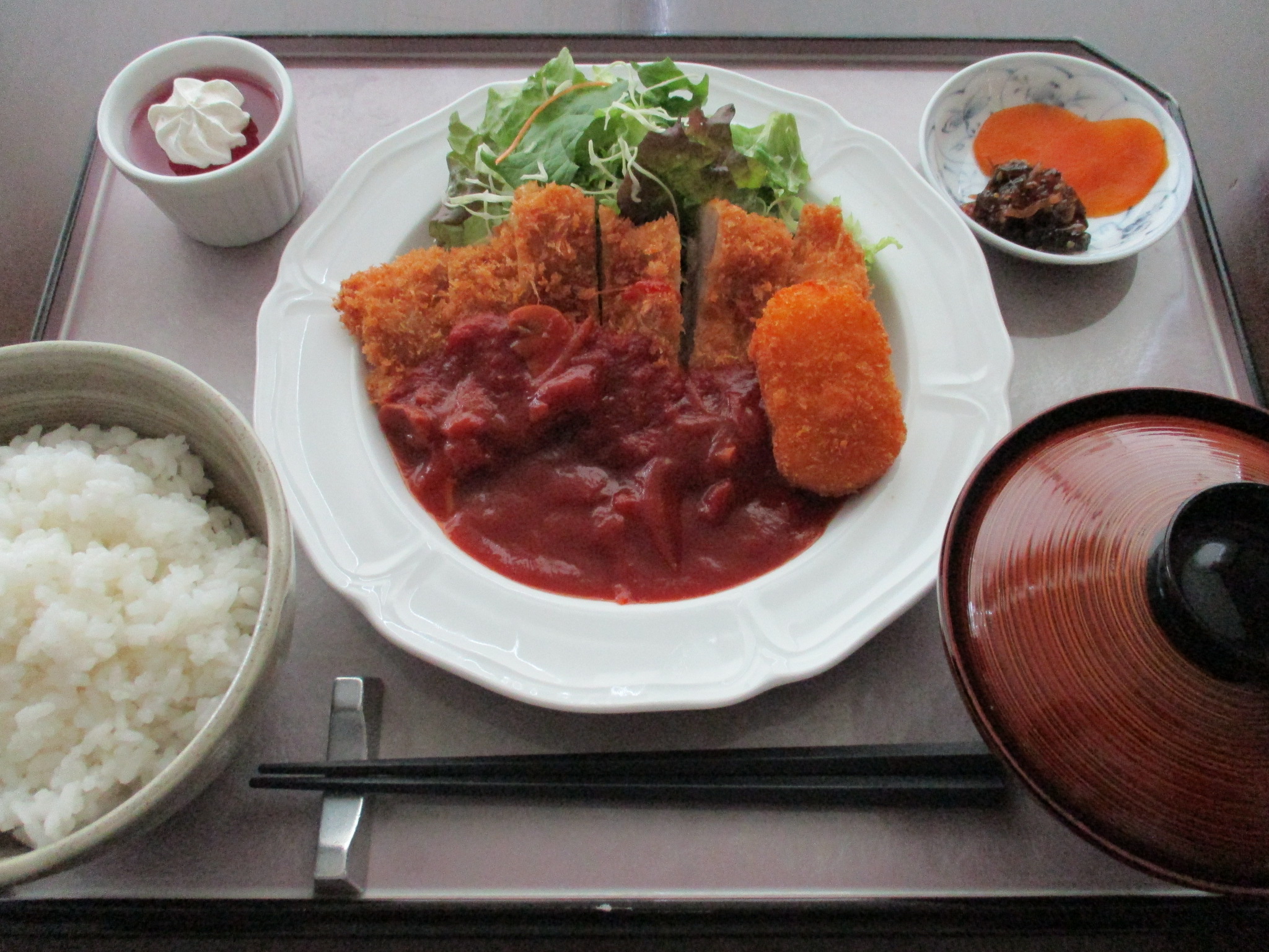 2月6日のランチ チキンカツトマトソース デザート付き