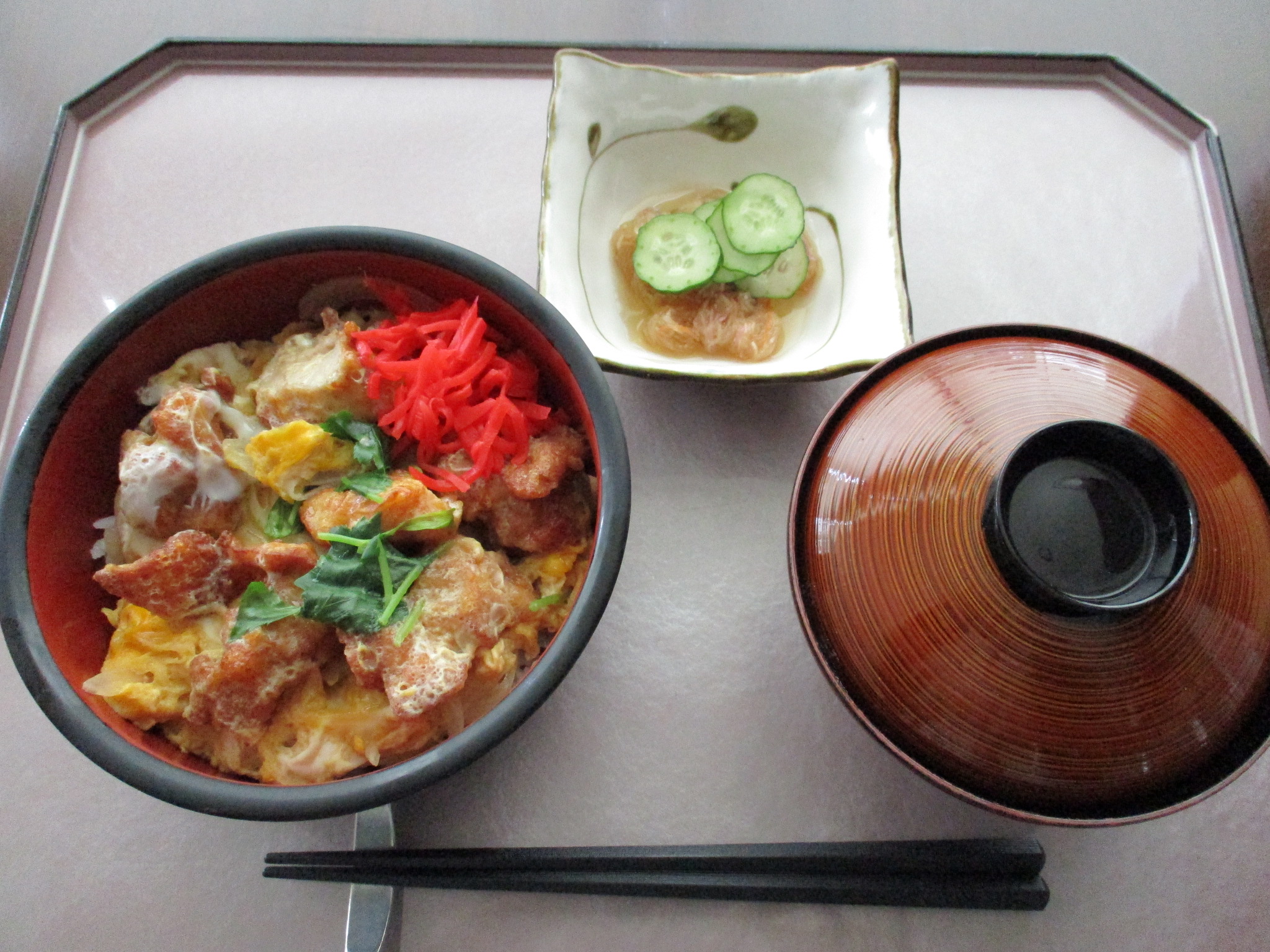 3月5日のランチ 鶏の唐揚げ卵とじ丼