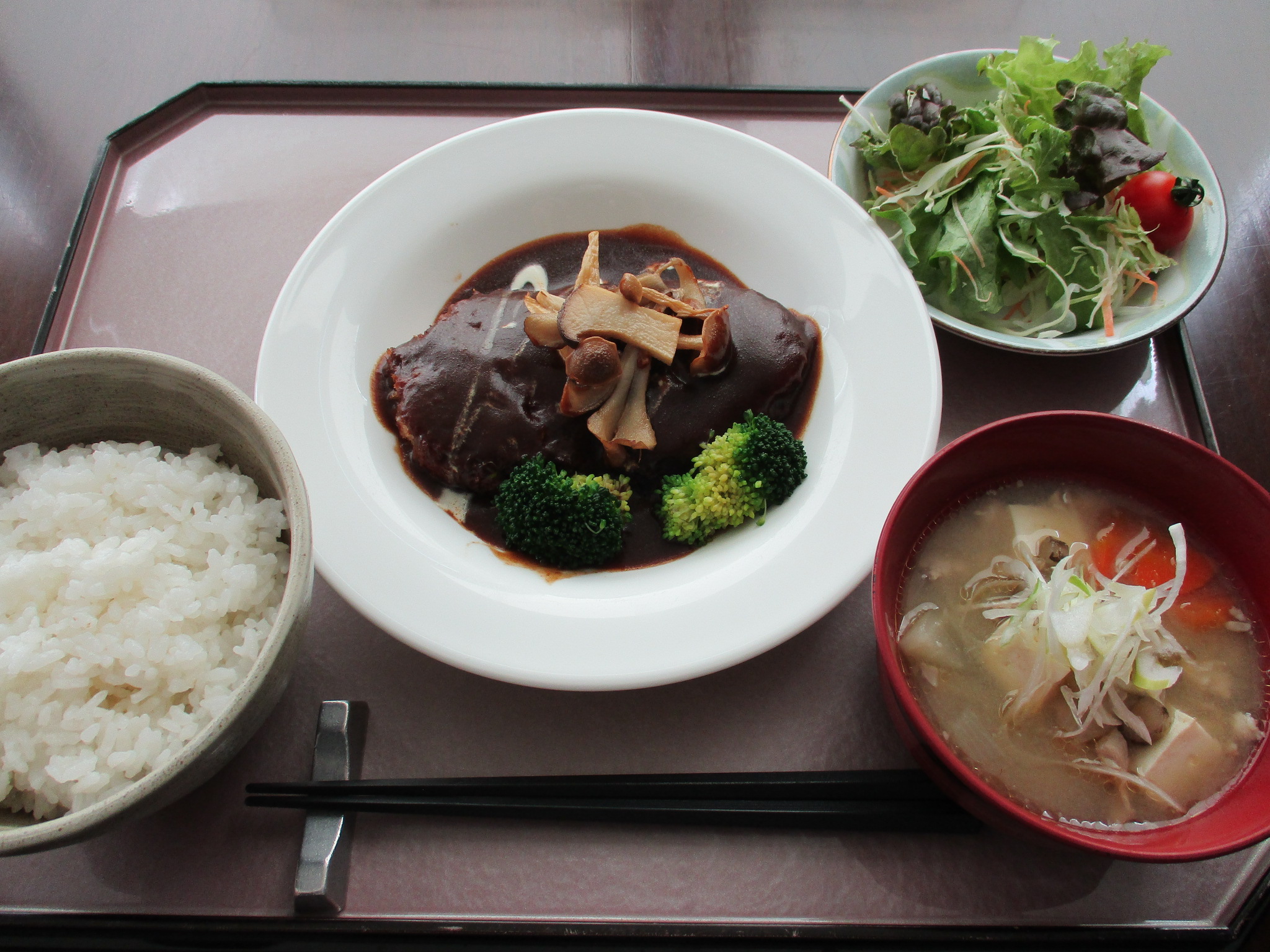 3月6日のランチ 煮込みハンバーグ 豚汁付き