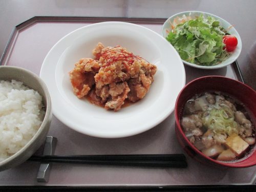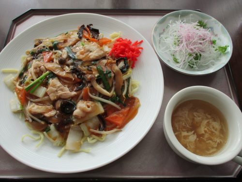 12月3日のランチ 油淋鶏 牛煮込み付き
