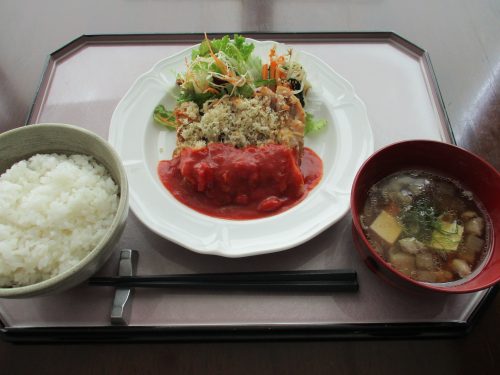 10月2日のランチ 鶏肉の香草パン粉焼き 牛すじ煮込み付